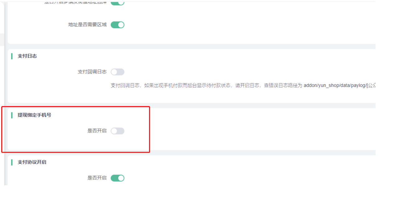 7)支付回调日志:支付回调日志,如果出现手机付款而后台显示待付款状态,请开启日志,查错误 日志路径为:addon/yun_shop/data/paylog/[公众号ID]