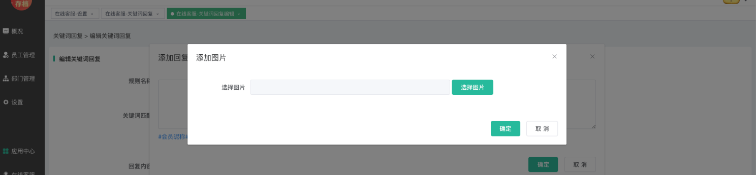 2、企业管理PC端--在线客服插件--设置--关键词回复;如下图: